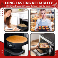 Courtesy of high-quality carbon steel, this cake mould set is crafted for durability and long-lasting performance. Carbon steel is celebrated for its strength and heat retention, ensuring even baking throughout. This robust material is resistant to warping, providing a reliable baking tool for years to come. You can feel confident as you create layer cakes, sponges, and more, knowing that the sturdy build will deliver consistent results every time.