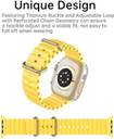 KICKSTORM Soft Silicone Ocean Band Adjustable Loop Sport Breathable Strap Watch Not Included Smart Watch Strap Ultra1/Ultra2/ 9/8/7/6/5/4/3/2/1/SE Compatible For Strap 49mm /45mm/44mm/42mm Smart Watch Strap Smart Watch Strap (Yellow)