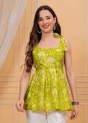 This kurti is very beautiful and cute 🥰 and I like the kurti , color is parrot green💚 some photos are taken in light so they look mustard green colour, quality is also good 😊 I just love it just go for it....😁
