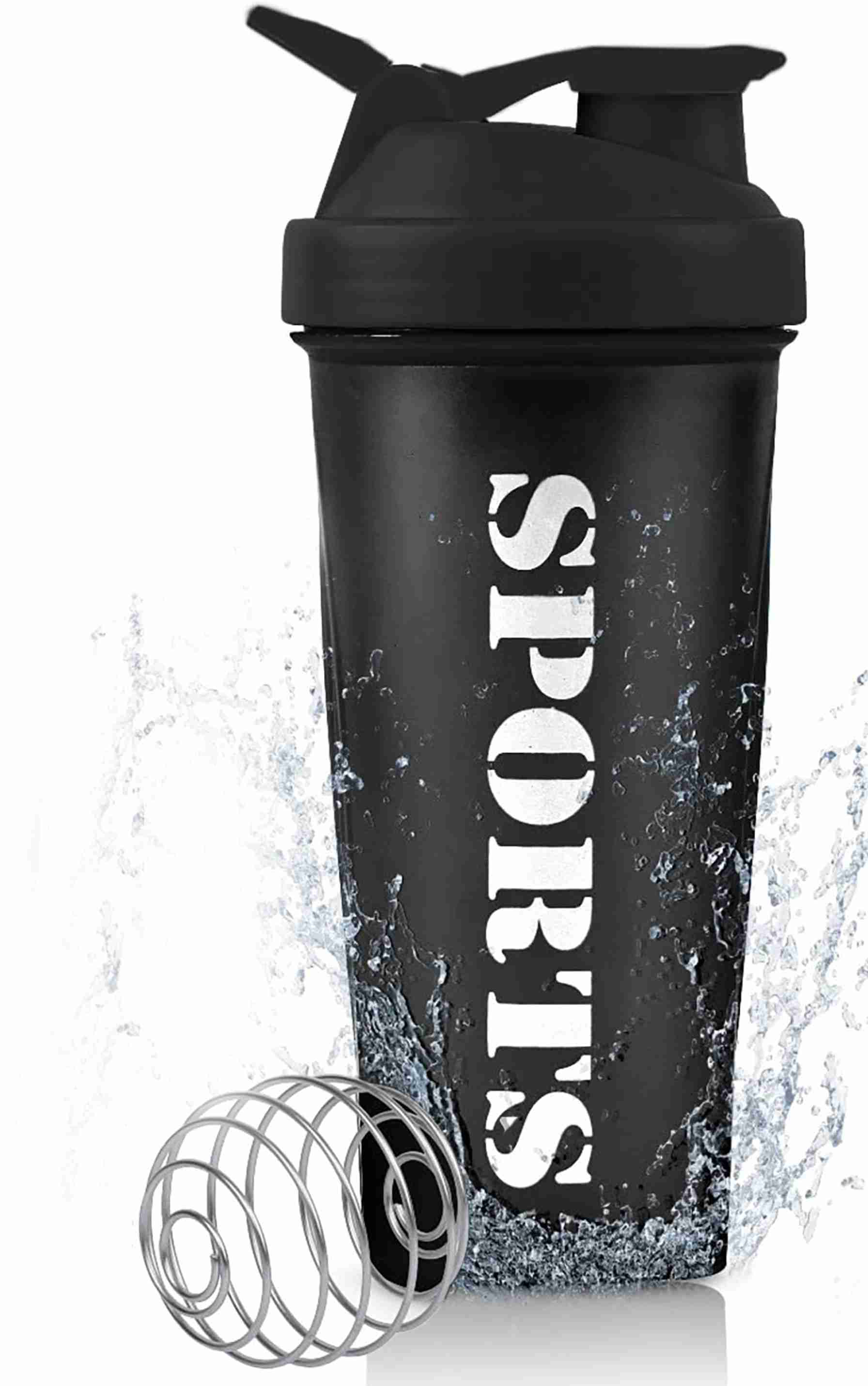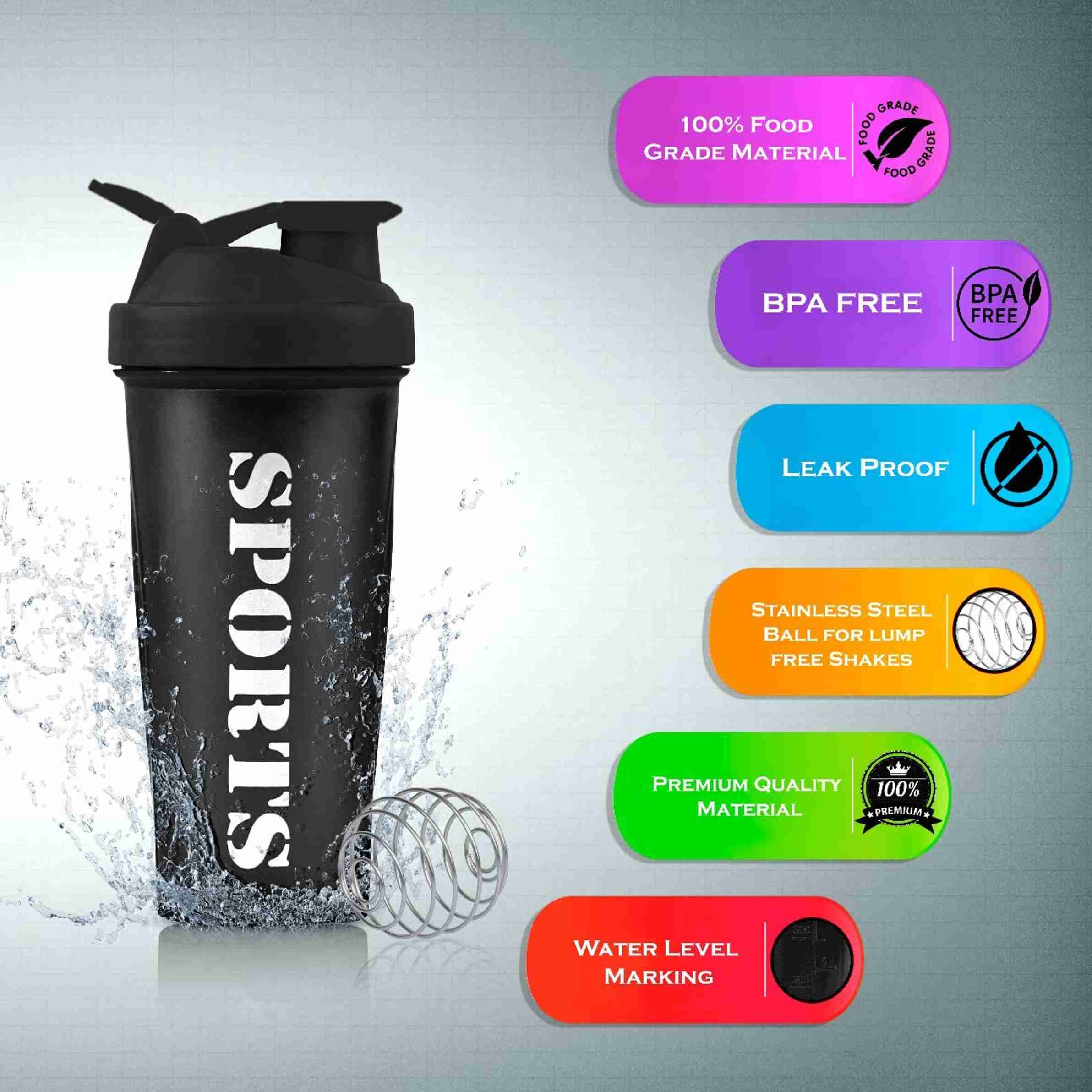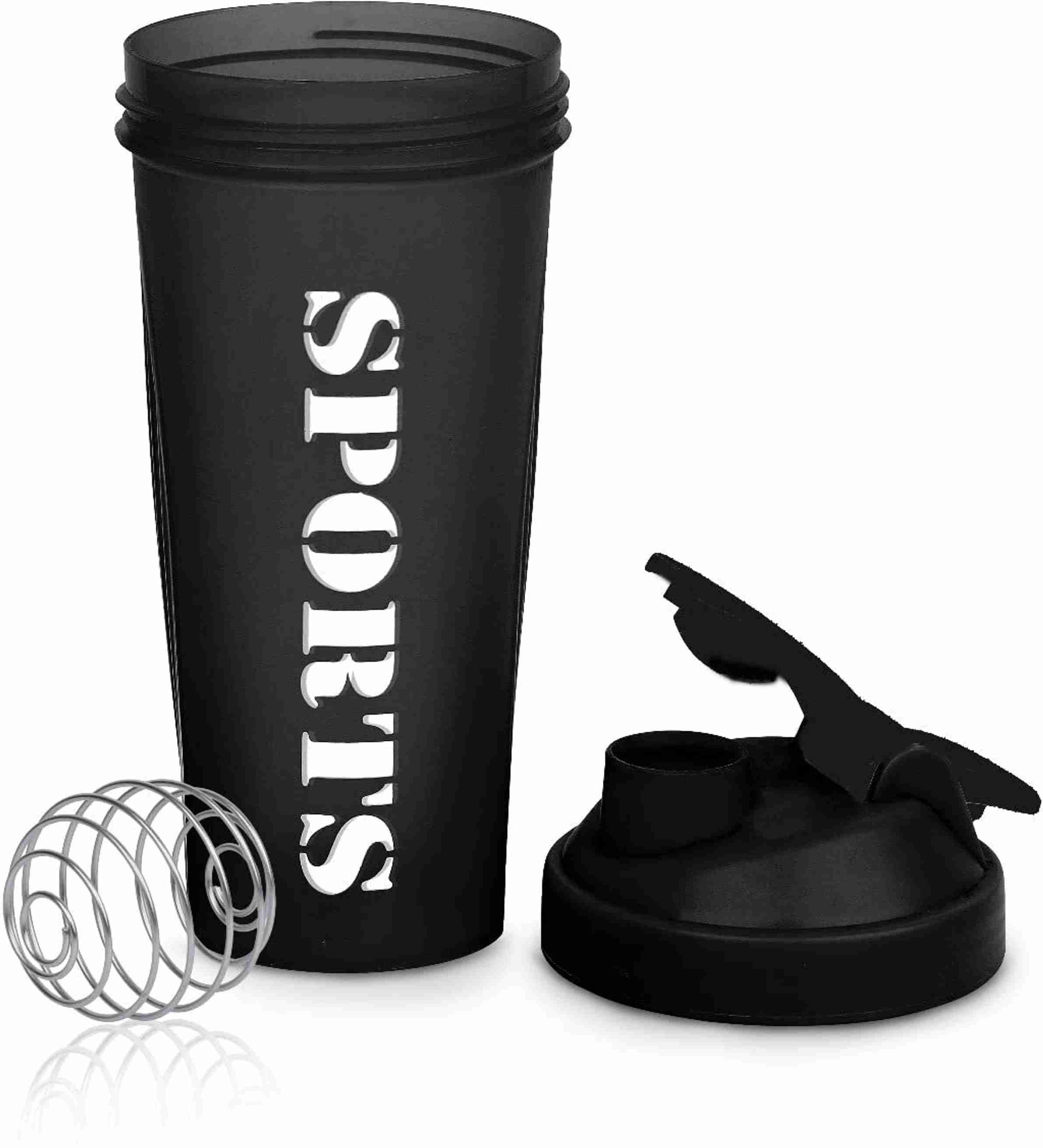 Sports Gym Shaker with Stainless Steel Mixer Ball for Protein Shakes 650 ml Plastic Shaker (Pack of 1, Black)