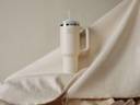 Tiny Treasure Wraps Stanley Quencher H2.0 Tumbler with Handle and Straw -Cream Stainless Steel Tumbler (1180 ml)