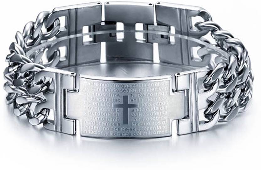 The Shining Tough Surface Is Given To This Stylish Masculine Formation Bracelet That Has Cross Engraved In A Celeb Style, That Shows A Bench Mark Of Style And Masculine Trend In Market. Highly Tough And Durable Stainless Steel Makes It Long Go For Rough And Tough Guys. The Bracelet Is Suitable For A Cool And Tough Looks.