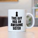 For the guy who’s lucky enough to have an awesome sister, this mug is a fun way to show it! With the phrase "This guy has an awesome sister" boldly displayed, it's a lighthearted reminder of that special sibling bond. Crafted from high-quality ceramic, this mug is microwave and dishwasher-safe, making it both practical and fun. A great gift for a brother to celebrate his amazing sister or a humorous addition to his mug collection!