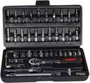 • This 1/4 inch ratchet socket bit tool kits made of chrome vanadium steel, with a mirror chrome plated finish for abrasion resistance, ratchet wrench with rubber handles for better and comfortable grip . Fab Innovations Socket and Bit Set, 46 Pieces, pulled or pushed in one direction, contains a ratchet that loosens or tightens the bolt or nut attached to the socket. Auto maintenance kit 1/4-inch car repair tools main features : type : hand tools, combination, wrenches, sockets, ratchet, vehicle maintenance and repair tools. The kit includes a range of screwdrivers, sockets, pliers, cutters, and other tools, making it a comprehensive set for home use. 46pcs socket set can be used for tightening or loosening most bolts, nuts, screws for maintenaning automotive, mechanical, motorcycle, etc. This ratchet wrench repair tool kit perfect for handyman, repairman, construction workers, mechanics, and also a great ratchet wrench repair tool set to have at home, garage and the workshop.