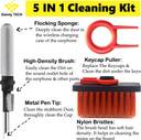 ✅ ORGANIZED DOUBLE HEAD DESIGN: 5-in-1 computer cleaning kit with Nylon Bristles Brush, Flocking Sponge, High-density Brush, Metal Pen Tip and Keycap Puller, double head hidden is specifically design to meet a variety of cleaning of different gadgets we use every day. It is the best Keyboard Cleanning Kits, 5 in 1 Dust Cleaner Brush for Computer/Cell Phone/Earphone AirPods/PC/Laptop/Keyboard(with Key Puller). ✅ PORTABLE & DURABILITY: It is specifically made by special selection of nylon brush with moderate softness and hardness, three-row design with high pore strength, good elasticity, stiffness and compactness, more time and labor saving and, the soft brush does not damage Keyboard. It is easy to pack in work bags. ✅ MULTI-FUNCTIONAL CLEANER SET: Our multifunctional Cleaning Kit contains Flocking sponge which can be used to clean the dust in the wireless charging case of the earphone. Also, high-density brush can clean the dirt on the sound outlet hole of the earphone. The metal pen tip can be used to clean the stubborn dust on the earbuds. ✅ ALL IN ONE TOOL: 5 in 1 keyboard and earphone cleaner has 4 kinds of cleaning head for multi-purpose deep cleaning every corner of the keyboard earphones. It is now easy to pull keys with a simple key puller, the change of key cap is no more laborious and the removal of key cap is cleaner, more thorough and safe. ✅ PROFESSIONAL & PORTABLE: Easy enough to carry in your bag. Professional enough to give your electronic device a neat and clean look