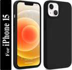 Coverskart Liquid Silicone Back Cover for Apple iPhone 15, Logo Embossed Shock Proof Microfiber Case (Black, Camera Bump Protector, Silicon, Pack of: 1)