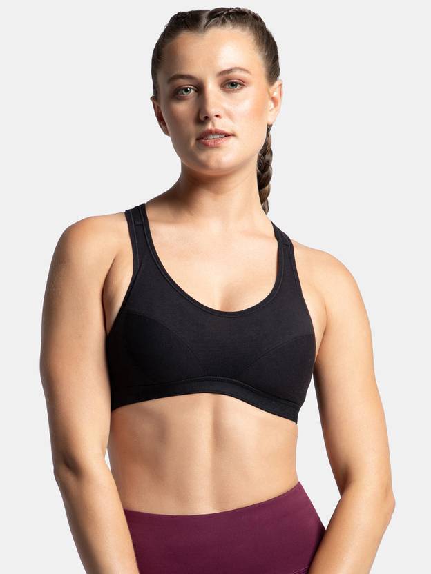 Jockey 1378 Wirefree Padded Super Combed Cotton Elastane Stretch Full Coverage Racerback Active Bra with StayFresh and Moisture Move Treatment - Black. Created with just the right blend of functionality, style, and comfort, the Athleisure Collection is the perfect fit for workouts, travel, or just a relaxing night in. This range is designed for the woman who? always on the go. Super Combed Cotton Elastane Stretch Fabric ,Fabric Composition : Cotton and Elastane ,Full Coverage Bra ,Wirefree and Padded ,StayFresh Treatment with Antimicrobial Properties to Help You Stay Fresh Throughout the Day ,Moisture Move Treatment to Wick Sweat Away From the Body ,Racer Back Styling ,Ultrasoft and Durable Underband ,Label Free for All Day Comfort. Hand wash, cold, Do not bleach, Do not wring, Drip dry in shade, Do not iron, Do not iron, Do not dry clean, Wash with like colours.