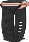 Raya Engraved Silicone Watch Bands for Women Compatible with Apple Watch 42mm 44mm 45mm 49mm | Super soft and flexible watch straps for iWatch Series 9/8/7/6 Ultra SE & SE2 Smart Band Strap (Black)