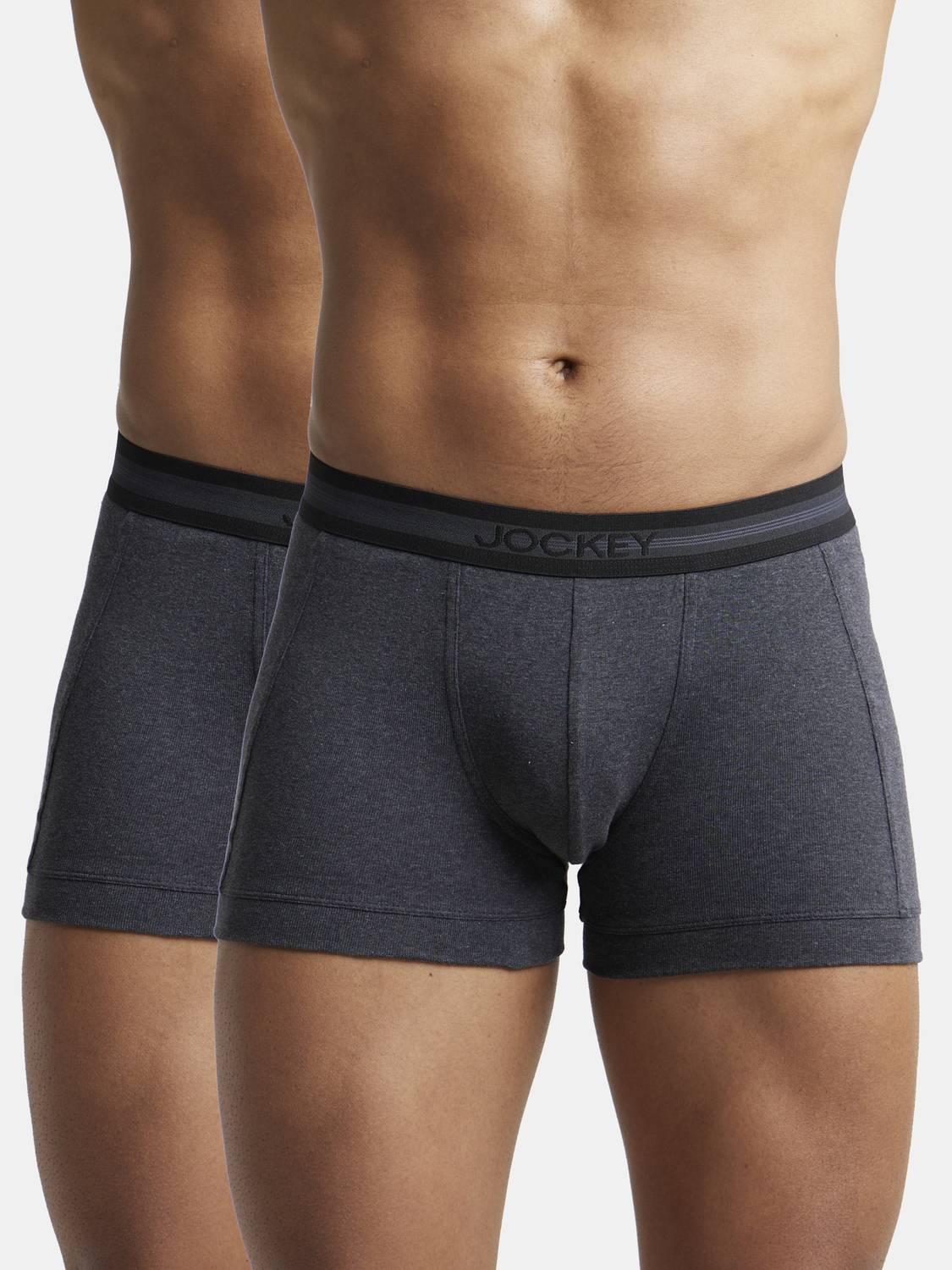 Jockey 1015 Super Combed Cotton Rib Solid Trunk with StayFresh Treatment - Black Melange (Pack of 2). The Elance Collection adds just a touch of elegance to a quintessential design.Its sleek look and soft feel makes this selection the right choice for the modern man who always aiming for bigger and better things Super Combed Cotton Rib Fabric ,Fabric Composition : Cotton ,Stayfresh Treatment with Antimicrobial Properties to Help You Stay Fresh Throughout the Day ,Engineered to Prevent Ride-Up ,Ultrasoft and Durable Waistband ,Label Free for All Day Comfort. Gentle wash 40C, Do not bleach, Do not wring, Tumble dry low, Do not iron, Do not iron, Do not dry clean, Wash inside out with like colours.