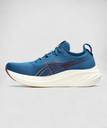 The GEL- NIMBUS 26 is the most comfortable shoe that creates a plush underfoot to help you feel like you're running on clouds, An updated knit collar and tongue construction are complemented with a revamped midfoot fit to create a more supportive fit, Outsole is strategically designed for advanced durability and grip, FF BLAST™ ECO PLUS cushioning helps create cloud-like cushioning properties and a greater percentage of recycled materials to support more sustainable manufacturing
