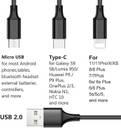 The Black Store USB Type C Cable 1 m 3 IN 1 Nylon Braided Charging Cable micro USB, Lightning Cable & Type C (Compatible with Type C cable, Micro USB Cable & Cable for iPhone, Black, One Cable)