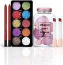 Beauty Makeup Kit For Women, 10Color Glitter Eyeshadow Palette, 7p Blender Sponge Jar, 2p Lipstick, 2P Lip Liner Contour Pencil