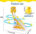 • Exquisite Design - The Small Ducks Climbing Toys has 3 little yellow ducks, LED lighting effects, ducks climbing stairs will be accompanied by music, there is a switch control, turn on the switch, the duck can climb the stairs independently, full of fun.