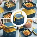 | Other Features | - 1. The lunch box is divided into 2 compartments, You can set different recipes, with staple food, vegetables, fruits Nutritional balance, to maintain the original flavor of the food without odor, Equipped with tableware, Let you have a happy lunch mood every day., Food-grade durable PP plastic materials,healthy food materials are safe to use,easy to clean,not easy to rust,corrosion-resistant, acid-base resistant,free of harmful metals, for your healthy diet escorting., he split structure,The inner shelf can be separated,, Satisfy your appetite, PP thick sealing cover, With custom made Handle for easy carrying, .Multifunctional lunch box , Cutlery storage box on top, spoon and fork as a gift, and the cutlery is fastened by a buckle, which is convenient and hygienic. After the plastic cover is covered, you can safely carry it out.