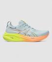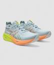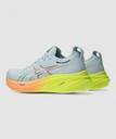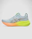 The GEL- NIMBUS 26 is the most comfortable shoe that creates a plush underfoot to help you feel like you're running on clouds, An updated knit collar and tongue construction are complemented with a revamped midfoot fit to create a more supportive fit, Outsole is strategically designed for advanced durability and grip, FF BLAST ECO PLUS cushioning helps create cloud-like cushioning properties and a greater percentage of recycled materials to support more sustainable manufacturing
