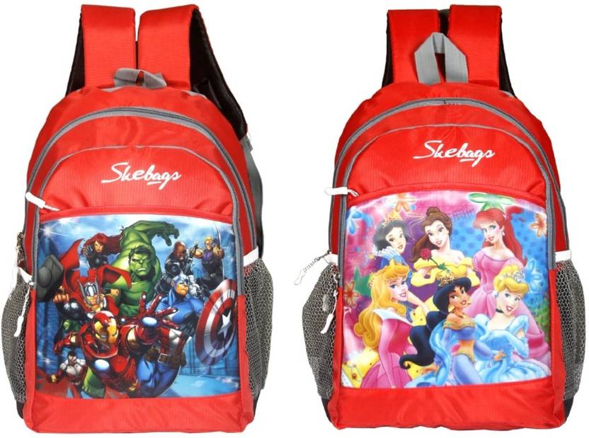 Skebags Medium 25 L Backpack Girl & Avengers combo Waterproof Backpack for Kids School Bag For Boys Girls (Red, Red)