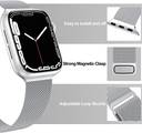 The strong magnetic clasp and adjustable loop buckle make it easy to install and remove the metal stainless steel band, providing a secure and comfortable fit for your Apple Watch. The loop magnetic Milanese mesh strap is compatible with iWatch Series 8, 7, 6, 5, 4, 3, 2, and SE, ensuring that you can easily switch between different watch models without any hassle. The high-quality stainless steel material adds a sleek and modern look to your wrist, while the durable construction ensures long-lasting use. Whether you're working out, running errands, or going to work, this band will provide a stylish and reliable accessory for your Apple Watch.