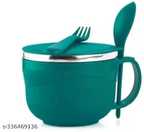 THANKSPLAST Stainless Steel Mixing Bowl Insulated Noodle Bowl with Lid & Spoon (Pack of 1, Yellow)