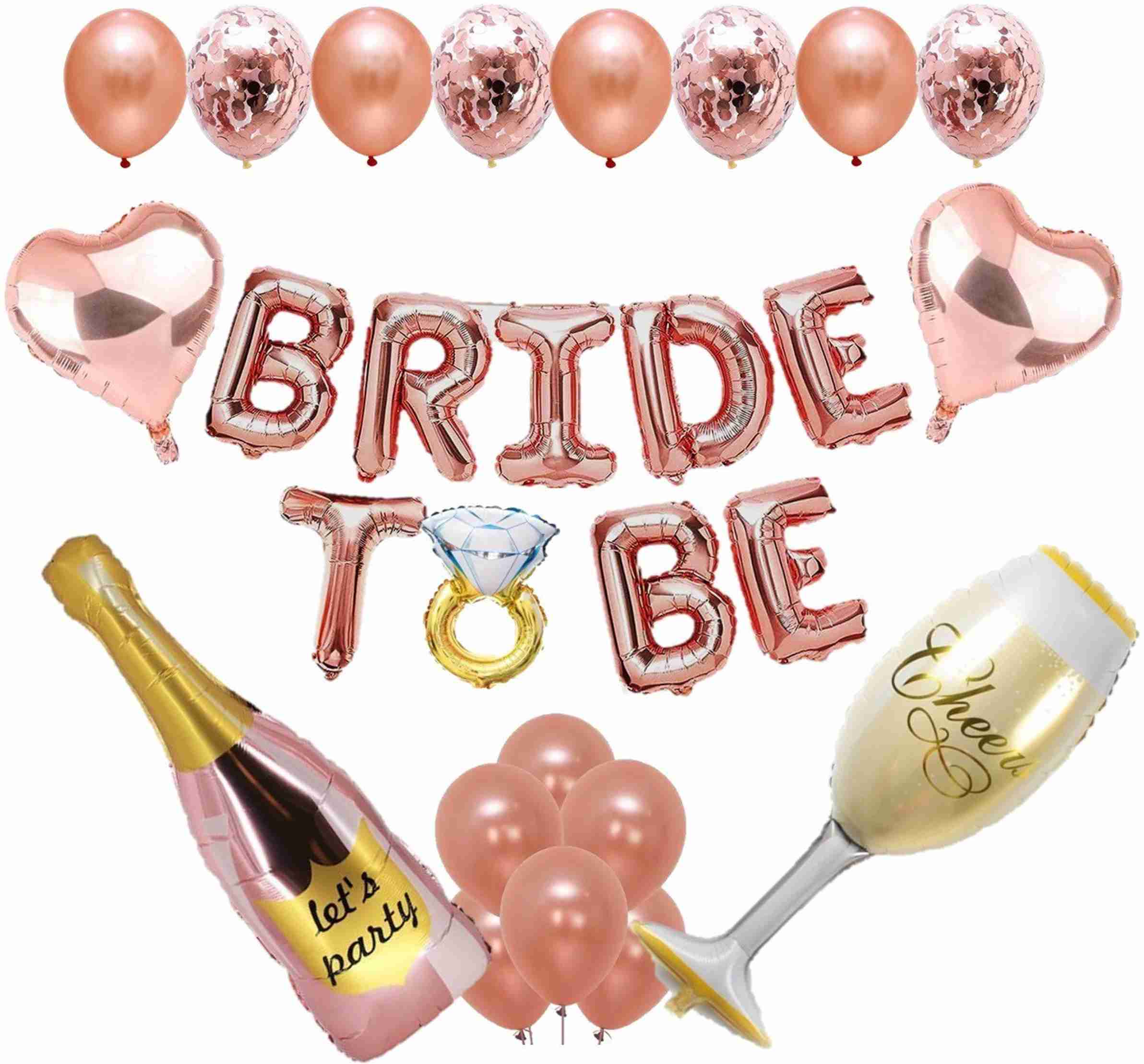 Solid Bride To Be Rose Gold decoration balloon with rose gold balloon with rose gold confetti, Heart Balloon Bottle & Gl...