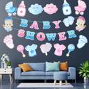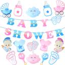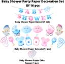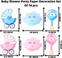 Birthday Popper Blue and Pink Baby Shower Party 16 Pcs Set; 1pc Baby Shower Banner+ 14pcs Paper Cutout+1pc Cake Topper for Maternity Photoshoot Decoration