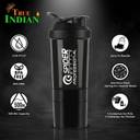 TRUE INDIAN Pack of 1 Gym Shaker Bottle with Storage Compartment and Blender Ball|Protein Shaker 500 ml Shaker Plastic