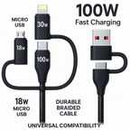ULTRADART USB Type C Cable 6.5 A 1 m lightning cable 4 in 1 65W Fast Charging Cable Compatible for-iPhone & Android with MFI Certified (1 Meter) (Compatible with iphone,oppo,realme,narzo,oneplus,vivo,iqoo,samsung,motorola,mi,redmi,poco, Apple, Yellow & Black, One Cable)