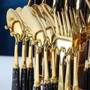 Cutlery Set Black Gold Plated with Marble Finish Handle Stainless Stee