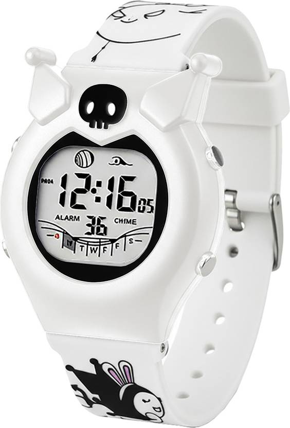 Introducing a delightful digital watch designed specifically for children aged 5-12 years. This water-resistant timepiece features a unique skull-themed design with charming decorative elements on both the dial and strap. Available in various appealing colours including purple, light blue, black, and white, this watch combines style with functionality. The easy-to-read luminous digital display shows time clearly with Alarm & stopwatch function making it perfect for young ones learning to tell time. The watch comes with special features like LED backlight for easy viewing in dark conditions. The durable construction and water-resistant capability make it ideal for active children who love outdoor activities and water play. The comfortable strap and lightweight design ensure all-day wearability, while the secure buckle keeps it safely in place. This watch serves as both a practical timepiece and a fashionable accessory that children will love to wear. The unique design elements and practical features make it an excellent choice for everyday use, whether at school, during playtime, or for special occasions.