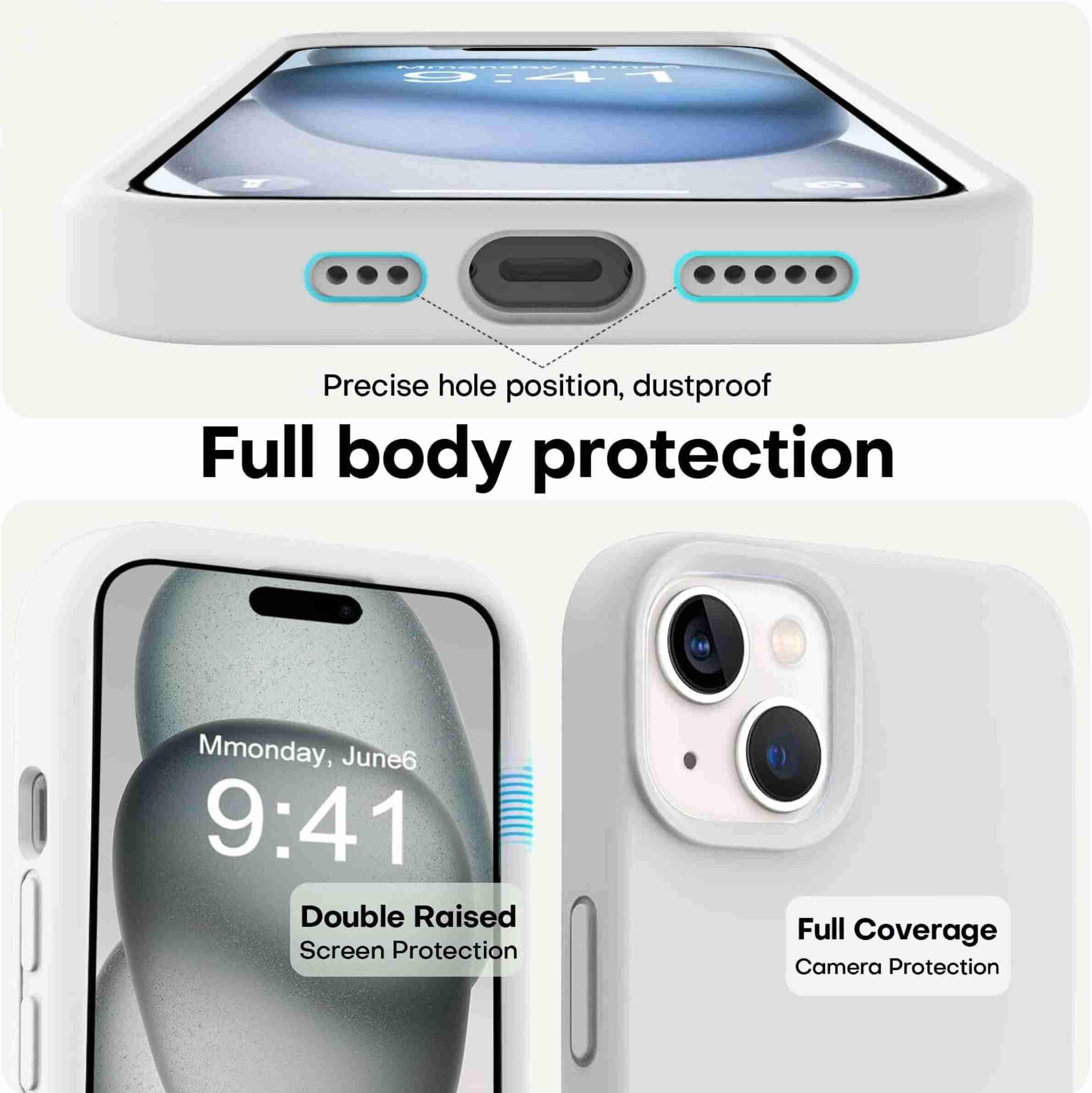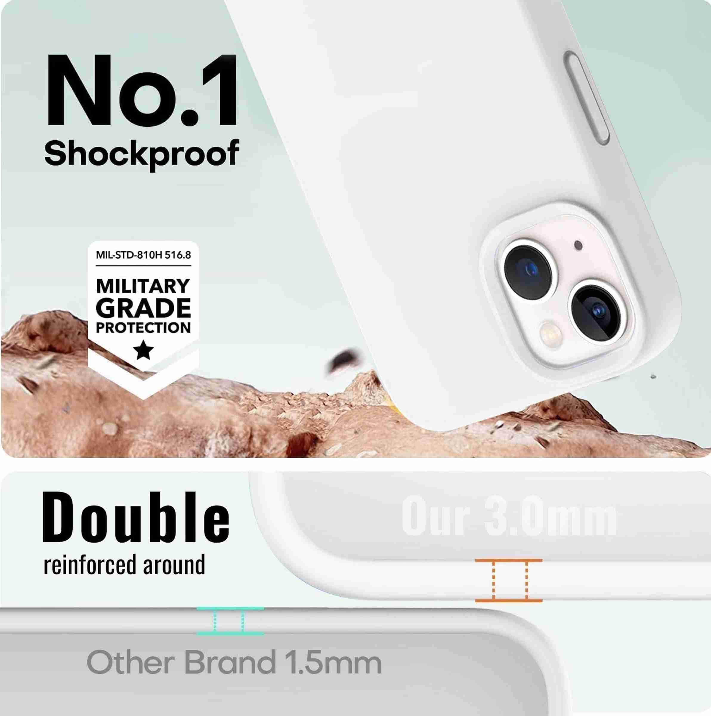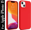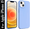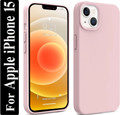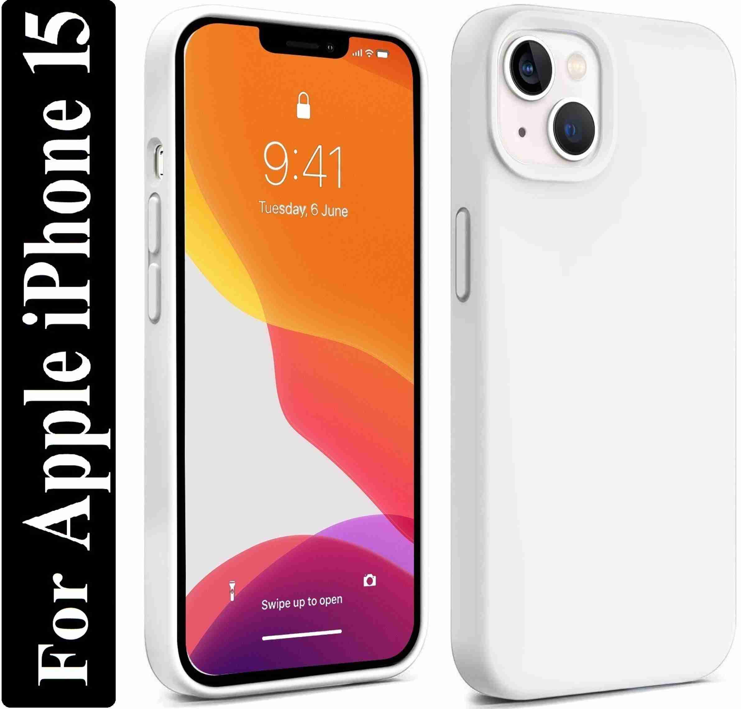 Liquid Silicone Back Cover for Apple iPhone 15, Logo Embossed Shock Proof Microfiber Case (White, Camera Bump Protector,...