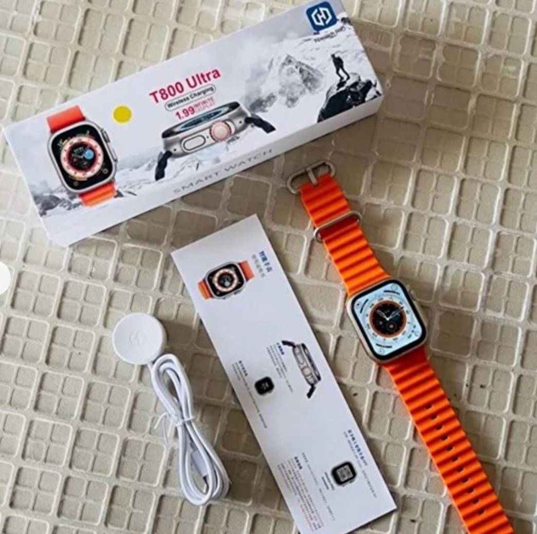 Pack content : 1 smart watch, orange rubber band with wireless charger.