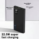 The K8 Black Power Bank comes equipped with four versatile charging ports: Dual Type-A, Type-C, and Micro, allowing you to charge multiple devices simultaneously, from smartphones to tablets and even other power banks. This multi-port functionality adds to its convenience and utility.
