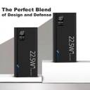 Introducing the K8 Black Power Bank by EVAAENTERPRISES, Which is the perfect companion for anyone who demands high performance and sleek design. Packed with a 20000mAh Lithium Polymer Battery, this power bank ensures you stay powered up for longer periods, whether you’re traveling, working, or on the go. With 22.5W Fast Charging capability, it delivers a quick energy boost to your devices, making sure you're never left waiting. Its compact design—measuring just 141.5mm in length, 27mm in thickness, and 66mm in width—makes it portable and easy to carry in any bag or pocket, while the 400g weight ensures it's sturdy yet lightweight enough for everyday use.
