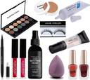 BEAUTY 12in1 Combo Kit - Matte Eyeshadow,Primer,Fixer,Contour cream,Eyelashes,EyeGlue,2 Mini Lipstick,2 Nailpolish,Eyeliner,Puff