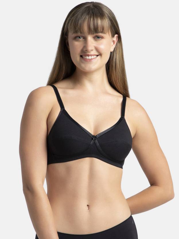 Jockey 1242 Wirefree Non Padded Super Combed Cotton Elastane Stretch Medium Coverage Cross Over Everyday Bra - Black. The Essence Collection is an everyday essential that provides all-day comfort and support. The right choice for the woman who needs innerwear she can count on in any situation. Super Combed Cotton Elastane Stretch Fabric ,Fabric Composition : Cotton and Elastane ,Medium Coverage ,Wire-Free, Non-Padded ,Cross Over Fit ,Innovative Crossover Design Provides Complete Support & Excellent Lift ,Soft and Smooth Adjustable Straps ,Label Free for All Day Comfort ,Based on the Size Band Of the Bra, the Number Of Hook and Eye Varies for Better Support. Hand wash, cold, Do not bleach, Do not wring, Drip dry in shade, Do not iron, Do not iron, Do not dry clean, Wash with like colours.