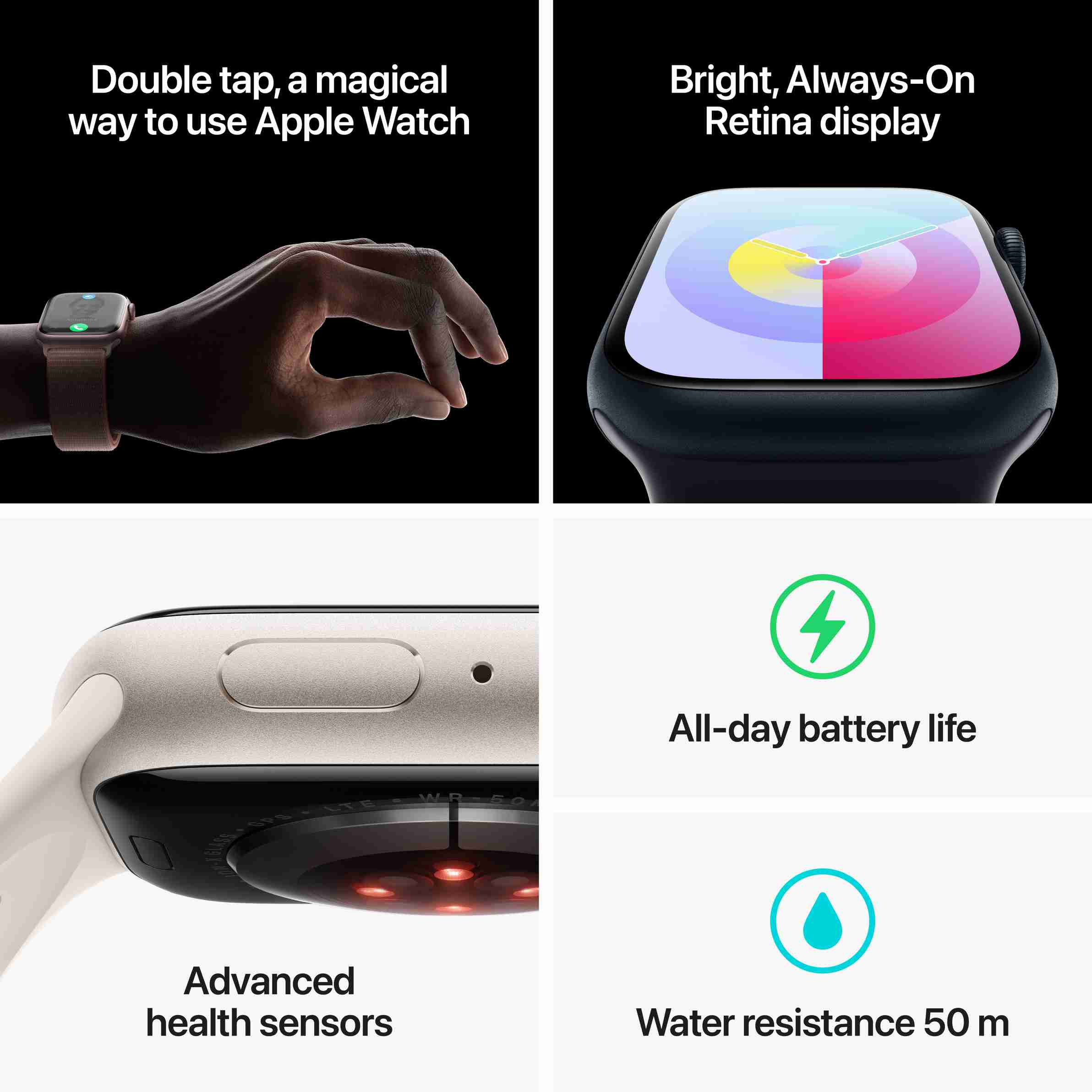 The Apple Watch Series 9 is highly praised for its accurate and useful activity trackers, including ECG, SpO2, heart rate monitoring, and fitness tracking.