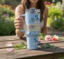 ved online mart Flower Engraved Stanley Quencher H2.0 Flowstate Tumbler Stainless Steel Tumbler (1200 ml)