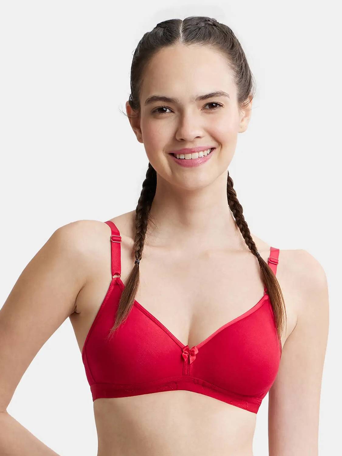 Jockey 1581 Wirefree Non Padded Super Combed Cotton Elastane Stretch Everyday Bra with Ultrasoft and Durable Underband - Red Love. The Essence Collection is an everyday essential that provides all-day comfort and support. The right choice for the woman who needs innerwear she can count on in any situation. Super Combed Cotton Elastane Stretch Fabric ,Fabric Composition : Cotton and Elastane ,Medium Coverage ,Wire-Free, Non-Padded ,Double Layered Cups for Modesty & Excellent Fit, Ideal for Smaller Sizes ,Ultrasoft and Durable Underband ,Label Free for All Day Comfort ,Based on the Size Band Of the Bra, the Number Of Hook and Eye Varies for Better Support. Hand wash, cold, Do not bleach, Do not wring, Drip dry in shade, Do not iron, Do not iron, Do not dry clean, Wash with like colours.