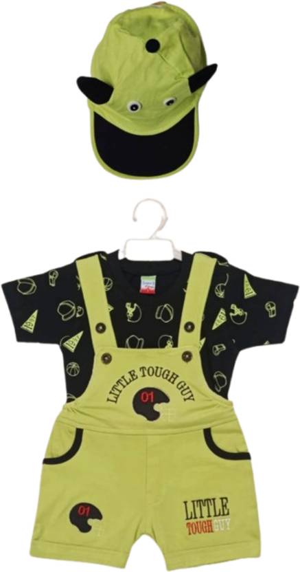 SANWARIA CLUB Dungaree For Baby Boys & Baby Girls Printed Hosiery (Light Green, Pack of 1)