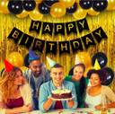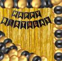 Mooke Solid Happy Birthday Golden Banner (13 foil letter 1 pack) / 2 Pcs silver Metallic Fringe Shiny Curtains / 30Pcs Gold and Black latex Metallic balloons for decoration(pack of 45) Balloon (Gold, Black, Pack of 45)