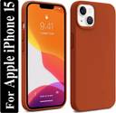 Coverskart Liquid Silicone Back Cover for Apple iPhone 15, Logo Embossed Shock Proof Microfiber Case (Brown, Camera Bump Protector, Silicon, Pack of: 1)