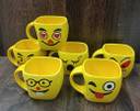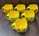 love unlimited Pack of 6 Bone China scqure smiley shushil-02/Gifts, 140 ML (Yellow, Cup Set)