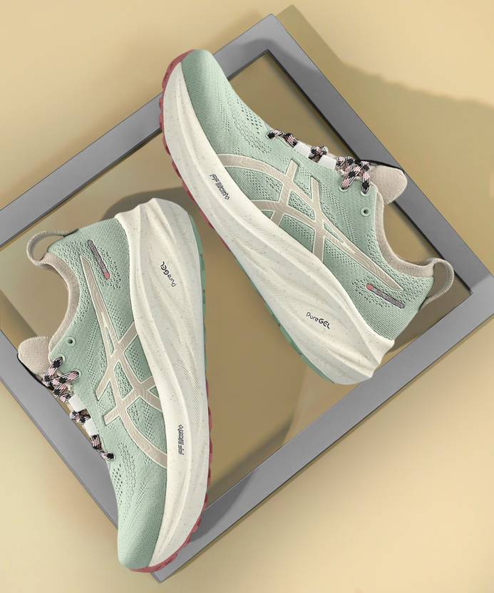 The GEL- NUMBUS 26 is the most comfortable shoe that creates a plush underfoot to help you feel like you're running on clouds, An updated knit collar and tongue construction are complemented with a revamped midfoot fit to create a more supportive fit, Outsole is strategically designed for advanced durability and grip, FF BLAST™ ECO PLUS cushioning helps create cloud-like cushioning properties and a greater percentage of recycled materials to support more sustainable manufacturing
