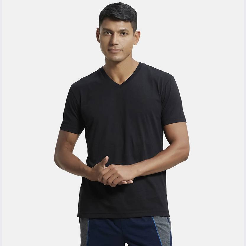JOCKEY Solid Men V Neck Black T-Shirt