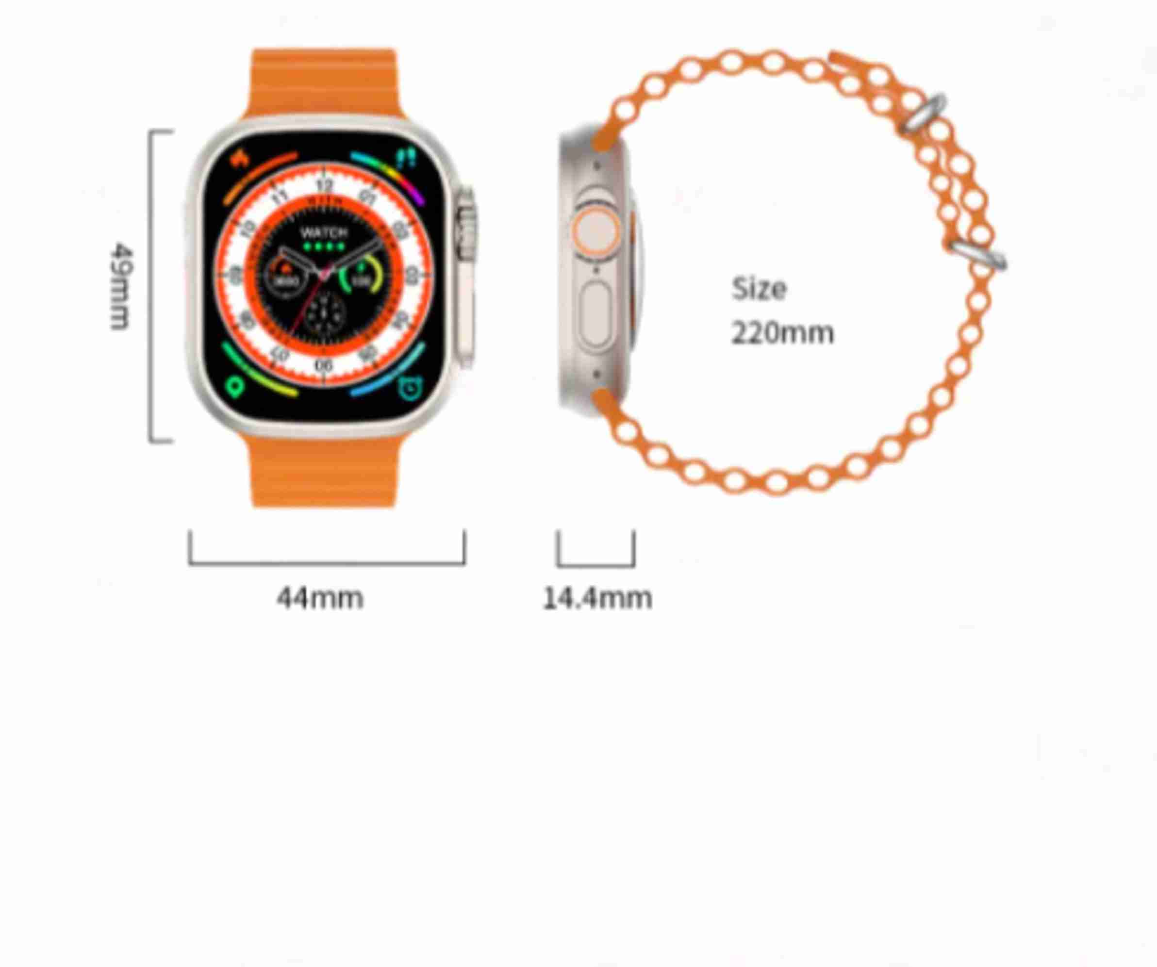 YUY_258Y_T800 ULTRA SERIES 8 SMARTWATCH WITH WIRELESS CHARGING FOR BOY & GIRLS Smartwatch (Orange Strap, Free)