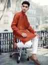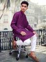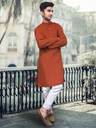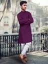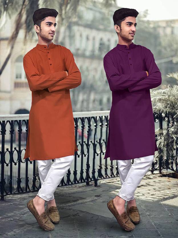 Pack of 2 Men Solid Pure Cotton Straight Kurta (Orange, Purple)