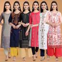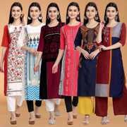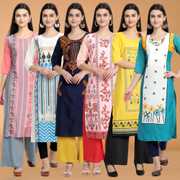 Pack of 6 Women Printed Crepe A-line Kurta (Multicolor)