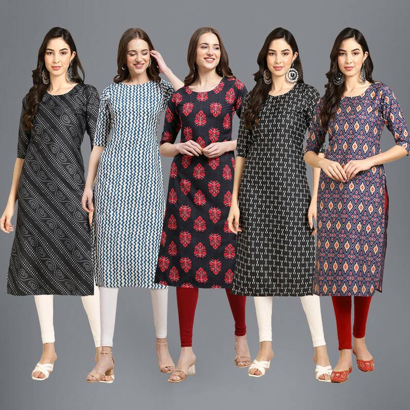 1 Stop Fashion Pack of 5 Women Printed Crepe Straight Kurta  (Multicolor)