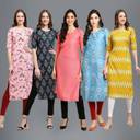 1 Stop Fashion Pack of 5 Women Printed Crepe Straight Kurta (Multicolor)
