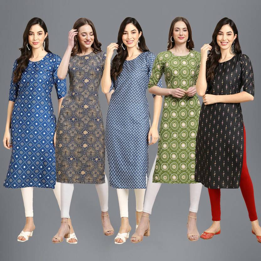 1 Stop Fashion Pack of 5 Women Printed Crepe Straight Kurta (Multicolor)
