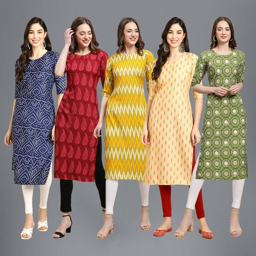 1 Stop Fashion Pack of 5 Women Printed Crepe Straight Kurta (Multicolor)